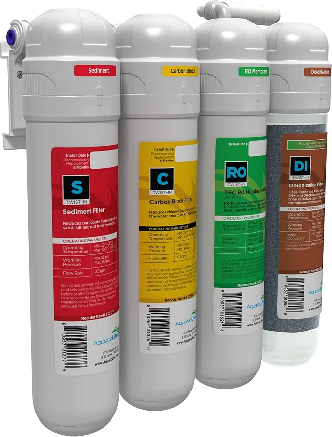 Osmoseurs 4 ou 5 étapes avec résine DI : permettent d’atteindre un TDS de 0 ppm. Recommandés pour les aquariums sensibles ou les récifaux.